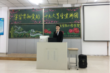 为进一步学习贯彻十九大精神,生物工程学院于2018年3月29日下午19时30分于主楼1-3举行了十九大宣讲活动。本次活动由校团委宣讲团主讲,辅导员苏斯朗杰老师、团总支副书记冯艳萍和17级全体同学参加了活动。
