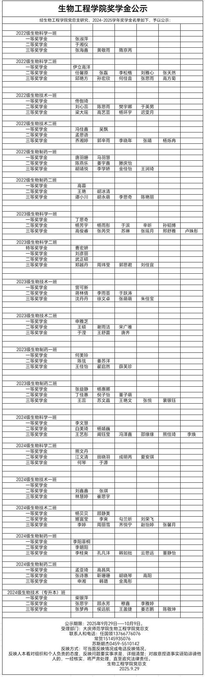 生物工程学院奖学金公示